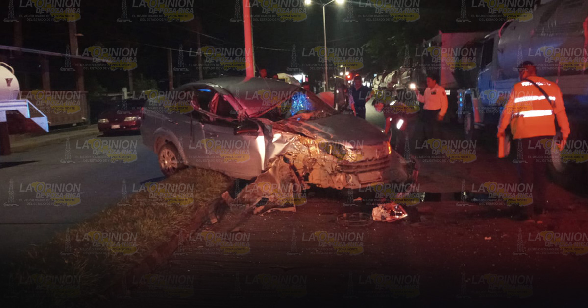 Tuxpan, Ver – Ebrio sujeto que manejaba su auto a exceso de velocidad sobre el libramiento de esta ciudad terminó estrellado en la parte trasera de una pipa de la CAEV resultó herido y tuvo que ser trasladado al Hospital Civil Emilio Alcázar para su atención médica.