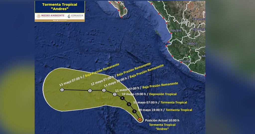 Se forma la tormenta tropical Andrés en el Pacífico; ocasionará lluvias en Michoacán, Colima y Jalisco