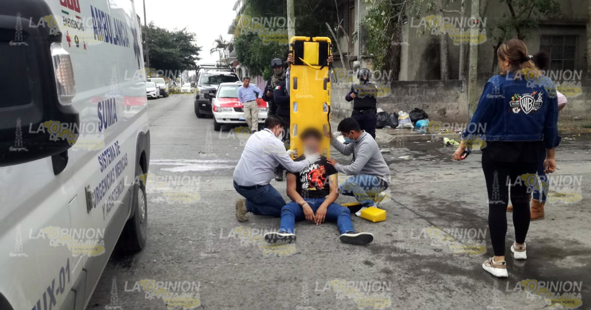 En el lugar quedó lesionado, José Esteban M.A., de 23 años, quien tras ser auxiliado por paramédicos del grupo SUMA fue trasladado a una clínica particular para su atención médica; donde es reportado estable.