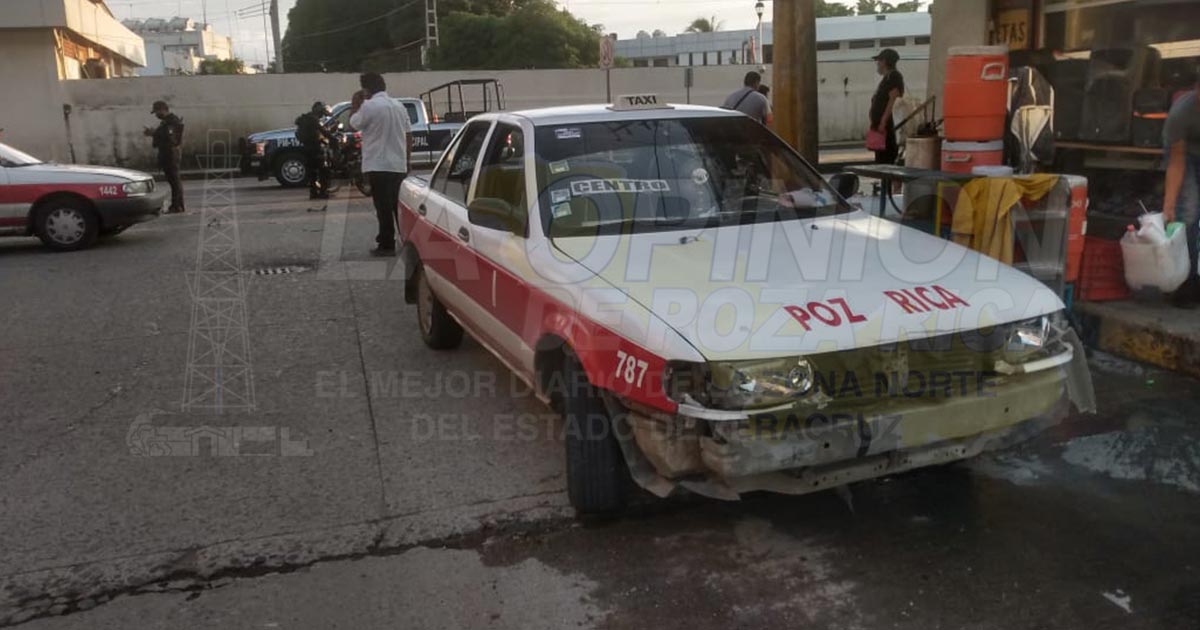 El taxi 767 de esta ciudad circulaba por el bulevar Adolfo Ruiz Cortines, cuando trató de ingresar a la calle Ignacio Aldama fue sorprendido por la unidad de dos ruedas.