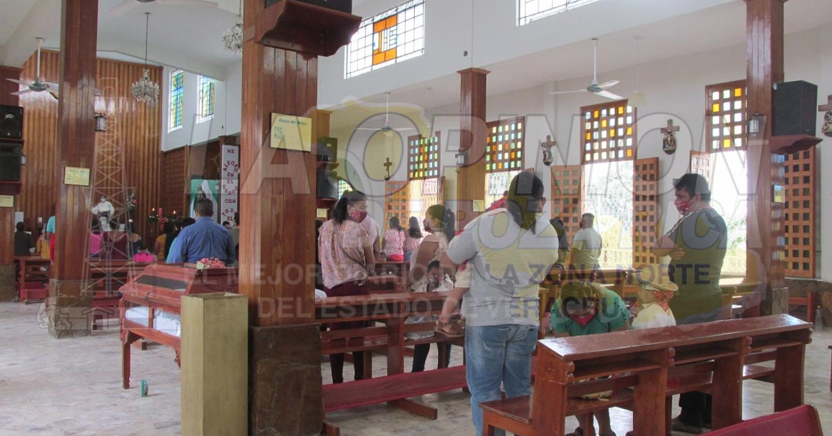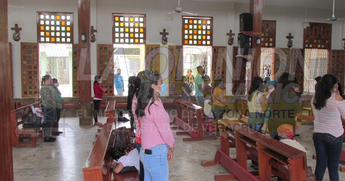 Tihuatlán, Ver. – La pandemia del nuevo coronavirus no impidió que fieles católicos cumplieran con la tradición de festejar a la Virgen de Guadalupe, aunque las celebraciones religiosas al interior del templo parroquial se realizaron a puerta cerrada y con asistencia de apenas el 25 por ciento en cada una de las cuatro misas programadas.