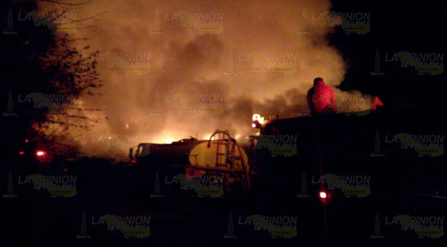 Elementos se bomberos, policía Municipal, Protección civil, de los municipios de Álamo, Cerro Azul y Naranjos trabajan a marchas forzadas debido a que en las inmediaciones de este lugar se ubica una gasera.