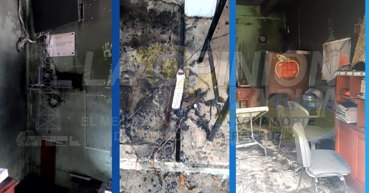 Tihuatlán, Ver. – Un corto circuito en las instalaciones eléctricas de la oficina de la dirección escolar de la primaria “Carlos A. Carrillo” de la localidad Nuevo Progreso Km. 12 ocasionó un incendio la mañana del sábado y destruyó documentación, mobiliario y otros enseres del local, reveló el Cuerpo de Bomberos de la Zona Conurbada.