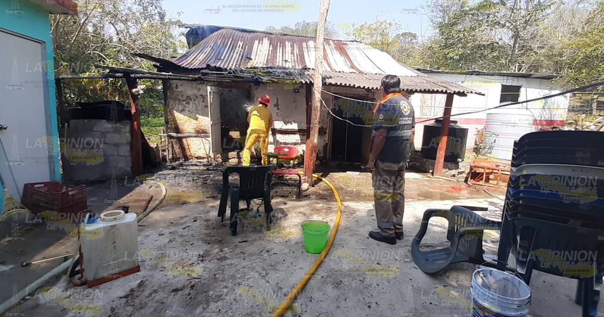 Tancoco, Ver. – Gran parte de una humilde vivienda fue consumida por el fuego durante el mediodía de este martes en la comunidad de la Mora perteneciente a este municipio lugar en el cual fueron movilizados corporaciones de emergencia de Tancoco y Cerro Azul a fin de controlar el siniestro el cual presuntamente fue provocado por una braza que broto del fogón.