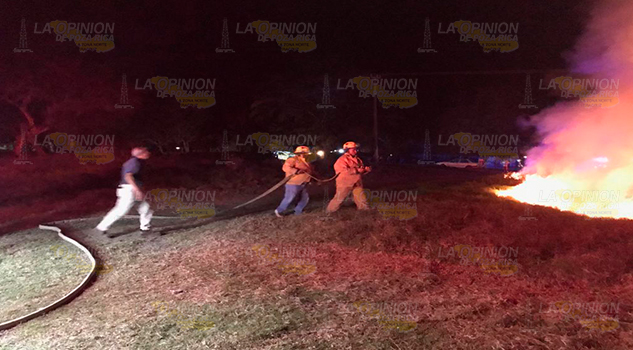 Álamo, Ver.- La noche del jueves se reportó al 911 un incendio en un pastizal a 30 metros de la carretera federal en un camino a la altura de la comunidad de Adalberto Tejeda, donde se consumió un pastizal desconociéndose el nombre del propietario.