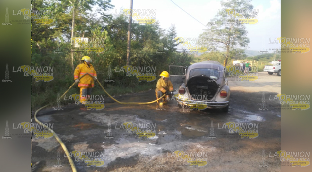 Naranjos, Ver.- Por causas que hasta el momento se desconocen un Volkswagen se comenzó a incendiar durante la mañana de este miércoles cuando transitaba sobre la calle Cervantes, por lo que tuvieron que acudir personal de contraincendio de Petróleos Mexicanos y personal de Protección civil logrando controlar el siniestro.
