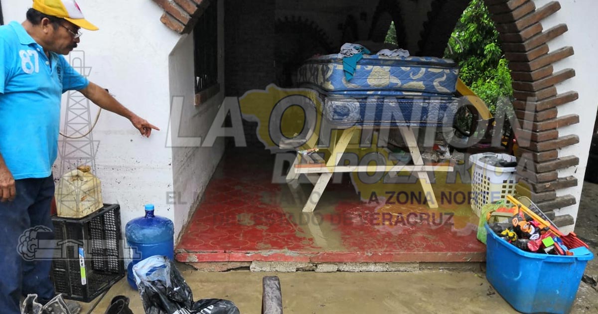 Tihuatlán, Ver.- El torrencial aguacero que azotó durante la madrugada del domingo dejó estragos en por lo menos ocho viviendas de la comunidad de La Isla-Kilómetro 10, luego de que una zanja a orilla de carretera federal se desbordara debido a los escurrimiento de agua y lodo que bajaron de las partes altas.