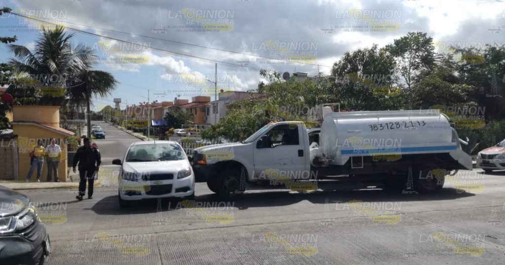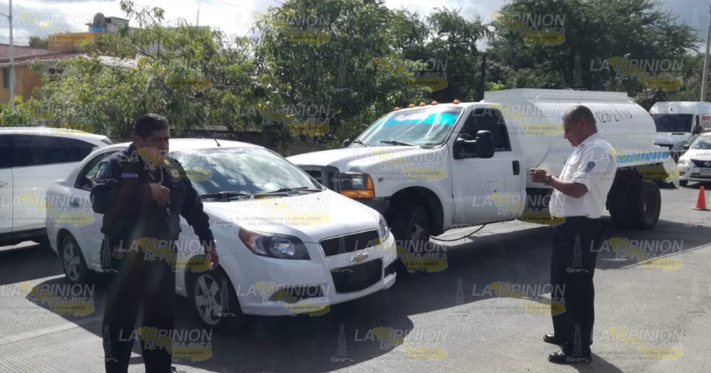 En el lugar chocaron una pipa transportadora de agua, sin placas de circulación y un automóvil Chevrolet Aveo, color blanco, matrícula YKV5655 del Estado, cuyos conductores resultaron ilesos tras el impacto.