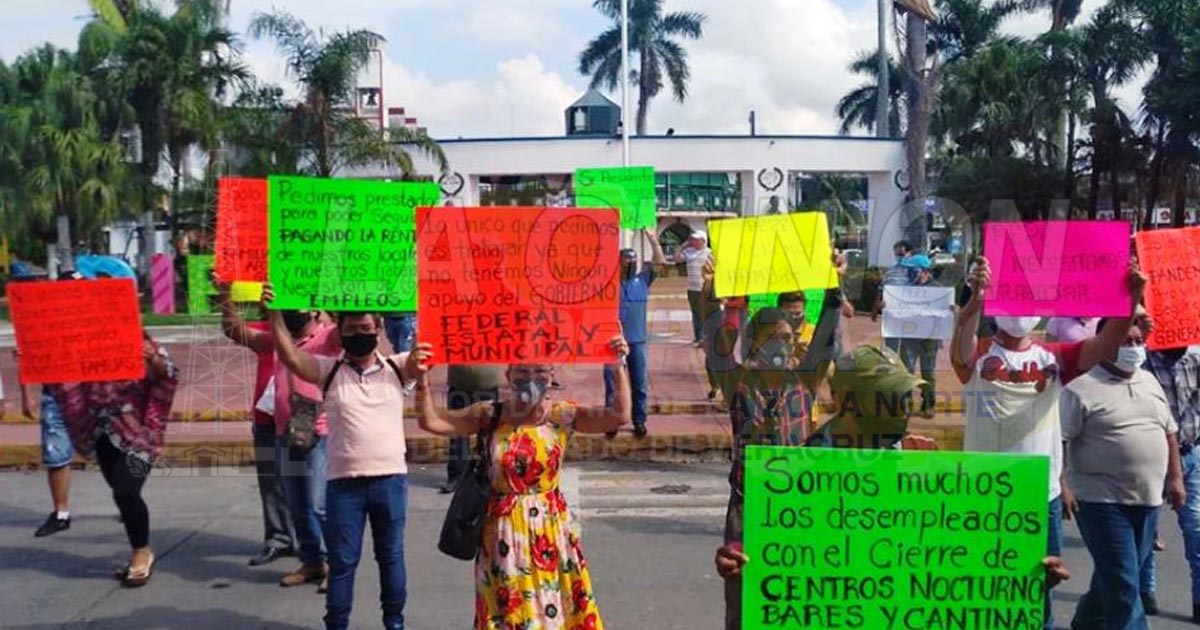 Martínez de la Torre, Ver. Propietarios de bares y cantinas de esta ciudad alzaron la voz frente a palacio municipal para exigir que los dejen volver a abrir sus establecimientos.