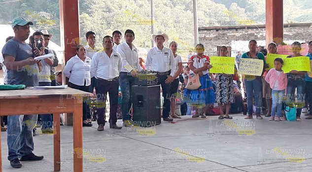 SZontecomatlán, Ver. Autoridades y habitantes de varias comunidades indígenas de este municipio, con pancartas se manifiestan para exigir que les asignen un médico en el centro de salud ubicado en el poblado La Candelaria.