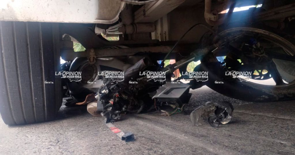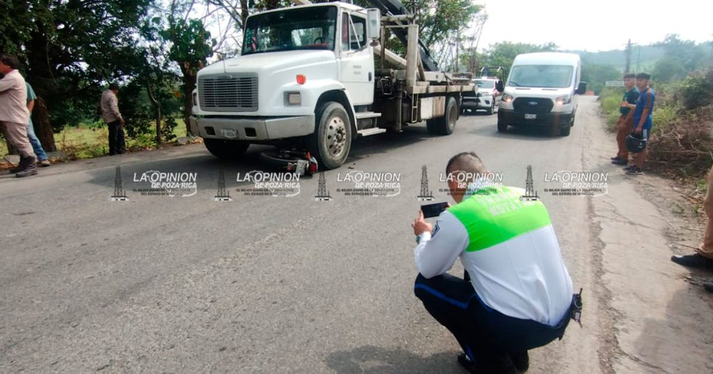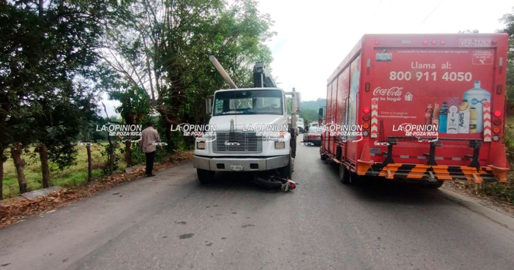 Coatzintla, Ver.- Trágico accidente ocurrió la mañana de este martes sobre la carretera estatal Coatzintla – Palma Sola, a la altura de la comunidad Corralillos, cuando un joven motociclista chocó contra un camión grúa. Su prima, quien lo acompañaba en la parte trasera de la motocicleta, resultó lesionada.
