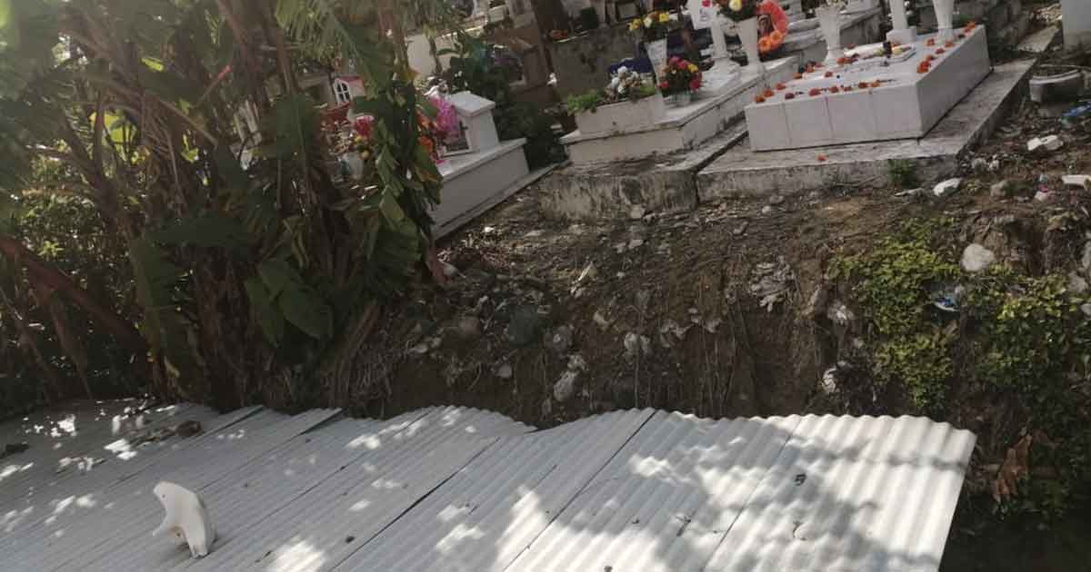 “Tenemos el temor que con cualquier lluvia fuerte las tumbas colapsen y nos afecten nuestras viviendas, ya que la barda tiene mucho tiempo que se cayó e incluso el problema se lo expusimos al regidor primero del ayuntamiento quien se comprometido el acudir a dar una solución a esta situación sin embargo de esto que quedo solo en una simple “promesa” tiene más de un año sin que se haga algo” expreso molesta una de las integrantes de esta familia.
