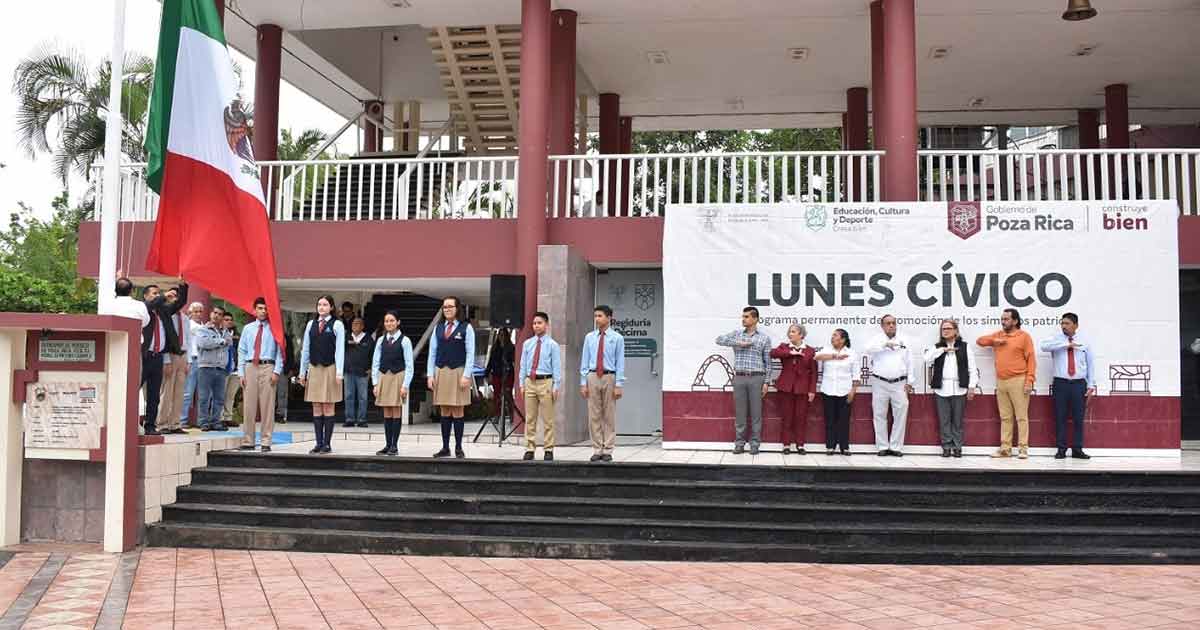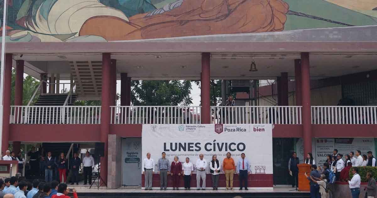 Poza Rica, Ver.- El alcalde Francisco Javier Velázquez Vallejo, convocó a los pozarricenses a sumarse a las festividades que han sido organizadas por parte del gobierno que preside con motivo del aniversario número 68 de la ciudad, con el evento “Poza Rica: Lugar de Encuentros”, y recordó que fue el 20 de Noviembre de 1951, cuando Poza Rica fue reconocido como municipio libre, lo anterior en el marco del acto cívico de los lunes celebrada en esta ocasión en la explanada del Palacio Municipal. Dijo que este logro fue gracias al trabajo de un grupo de hombres y mujeres que vieron la necesidad de una gestión propia que permitiera a este pueblo migrante crecer como sociedad.