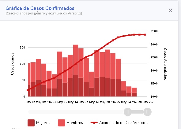 De 212 municipios veracruzanos, los que concentran el mayor número de personas contagiadas hasta este 27 de mayo, por coronavirus son: Veracruz (1299), Coatzacoalcos (411), Poza Rica (299) y Boca del Río (164).