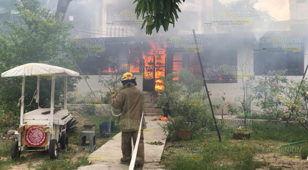 Tuxpan, Ver.- Una casa quedó reducida a escombros luego de que presuntamente se registrara un corto circuito y provocó que fuera envuelta en llamas, cuerpos de seguridad y de emergencia se movilizaron logrando controlar la emergencia; por fortuna no hubo víctimas que lamentar.