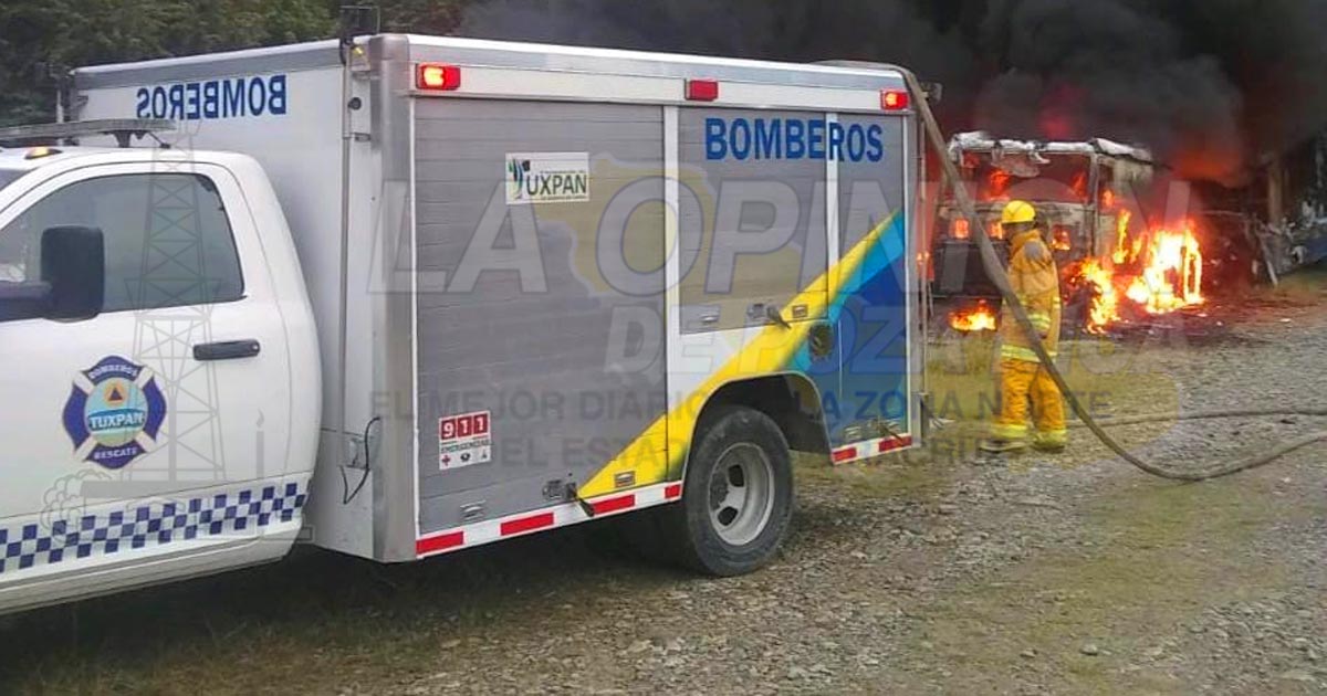 Tuxpan, Ver.- cuantiosos daños materiales fue el saldo que arrojó el incendio de dos tractocamiones al interior del corralón de la empresa grúas Tuxpan; bomberos municipales así como objetivos de Protección Civil controlaron la emergencia.