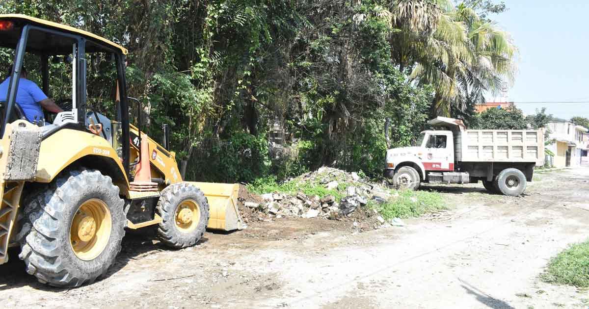 Poza Rica, Ver.- Atendiendo las inquietudes de los vecinos de la colonia Nacional, el gobierno del alcalde Francisco Javier Velázquez Vallejo, llevó a cabo labores de limpieza sobre la calle Lázaro Cárdenas de ese sector, específicamente entre las calles Emilio Portes Gil y Pascual Ortiz Rubio, en donde desde hace años, se tiene la presencia de un basurero clandestino, por lo cual con el respaldo de maquinaria fueron retirados desperdicios como televisiones, llantas, muebles, animales muertos, cascajo, entre otros que representaban un foco de infección y riesgo para los habitantes de la zona, pues la vía de comunicación es paso común para vecinos de colonias, La Ceiba, Los Sauces, Poza de Cuero, Sector Popular entre otros sectores cercanos.