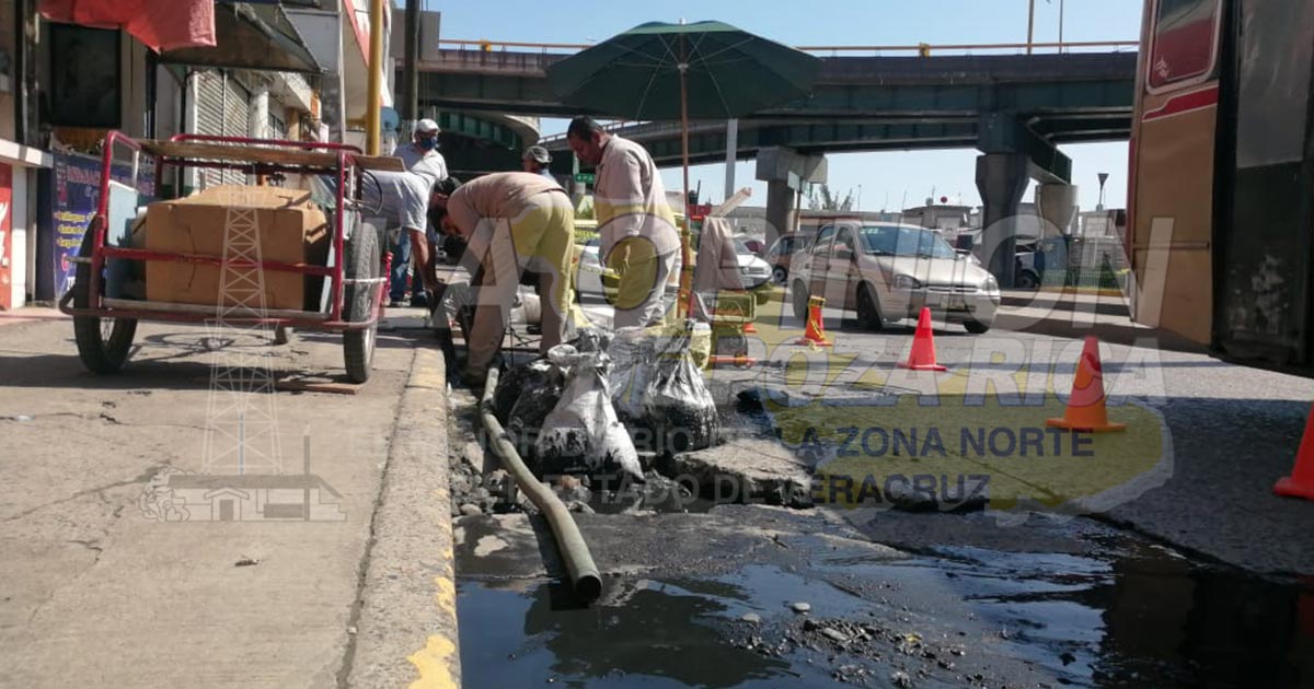 Poza Rica, Ver.- Se retrasa reparación de fuga de agua sobre el boulevard Lázaro Cárdenas, empleados de la Comisión de Agua del Estado de Veracruz, tendrán que continuar sacando con las manos los desechos de aguas negras para poder reparar una fuga de agua.