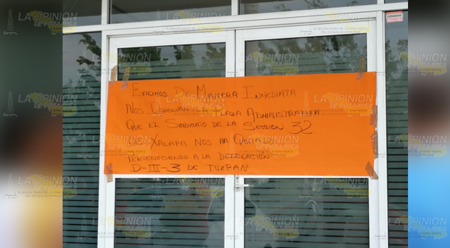 Impidiendo el acceso a las instalaciones de la delegación regional de la Secretaría de Educación de Veracruz (SEV) señalaron que exigen de manera inmediata que se les devuelva la plaza administrativa que el sindicato de la sección 32 de Xalapa les quitó, pese a pertenecer a la delegación D-III-3 de Tuxpan.