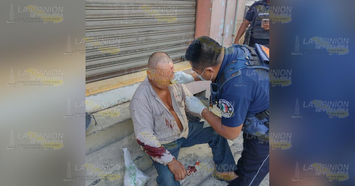 CERRO AZUL, VER.- Una herida cortante en la región frontal sufrió un adulto de la vecina localidad Toteco, municipio de Tantoco, luego de tropezar y caer sobre el pavimento de céntrica calle de esta ciudad; la lesión le provocó una fuerte hemorragia que le ensangrentó las ropas.