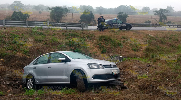 Automóvil jetta, color gris, modelo 2017, con placas de circulación YJX8550 del estado, circulaba por la autopista, cuando perdió el control de forma dramática justo en el entronque con Cazones y Poza Rica, cayendo en un zanja.