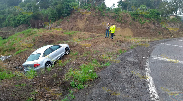 Papantla, Ver.- Conductora perdió el control de su unidad cuando circulaba por la autopista Totomoxtle y quedó en una zanja a un costado del entronque a cazones.