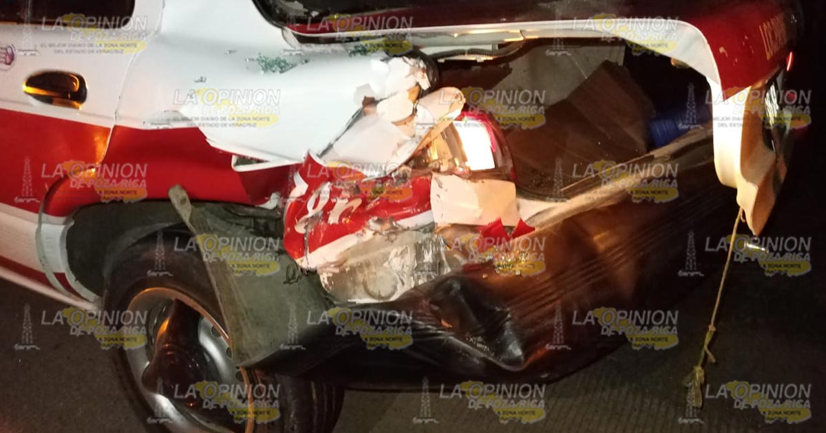 Papantla, Ver.- Aparatoso accidente dejó como saldo dos personas luego que un despistado conductor chocara por alcance contra una unidad de alquiler, siendo socorridos por paramédicos de protección civil quienes les brindaron los primeros auxilios.