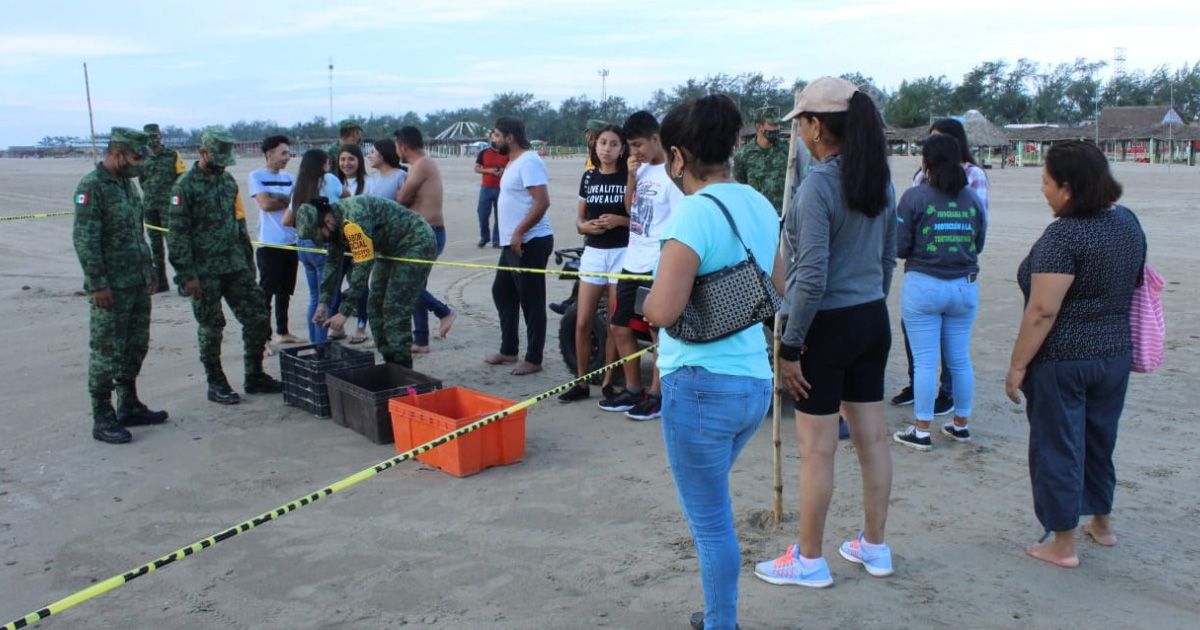 Tuxpan, Ver.- Con el objetivo de apoyar la conservación del medio ambiente y preservar la especie de tortugas Lora, que cada año arriba a playas de Tuxpan para desovar, elementos del Ejército Mexicano se sumaron a la labor de activistas voluntarios en la liberación de quelonios.