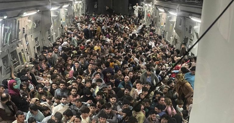 Se viraliza foto de avión con más de 600 refugiados afganos