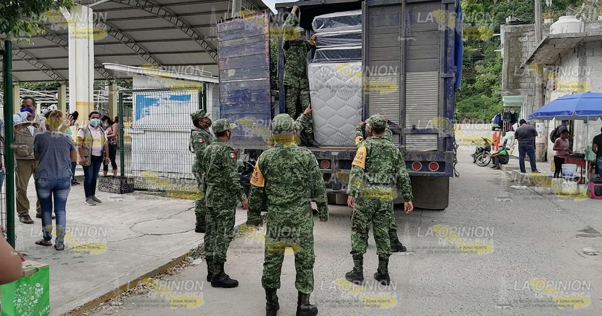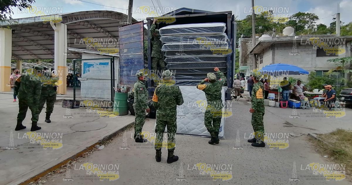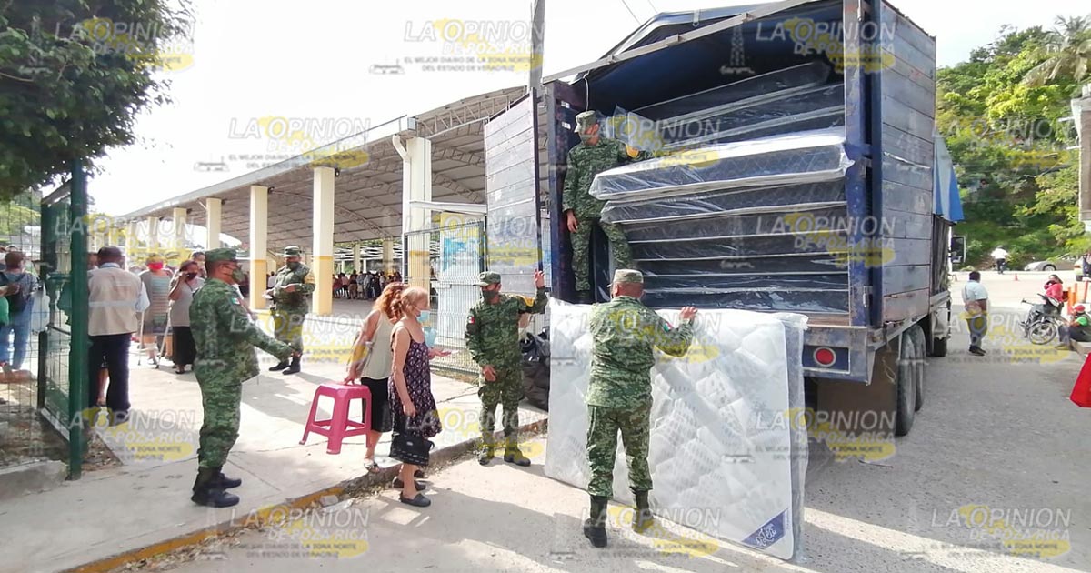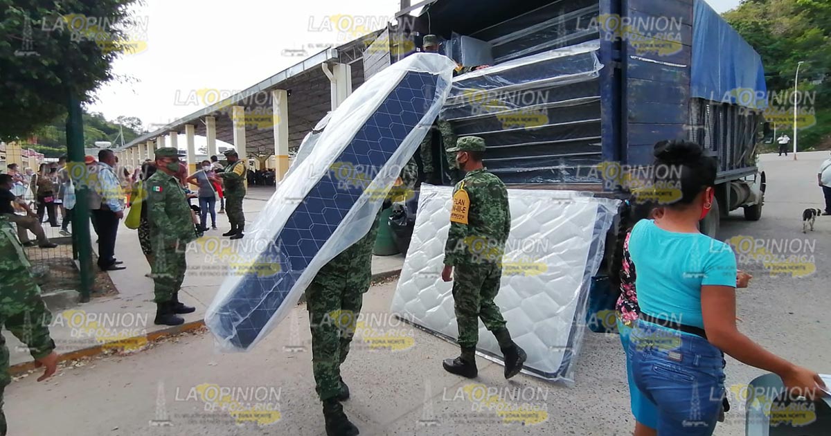 Papantla, Ver.- Elementos de la Secretaría de la Defensa Nacional llevaron a cabo la entrega de colchones a familias que resultaron damnificadas por el huracán Grace, siendo entregados apoyos de manera directa a los beneficiarios del gobierno federal.