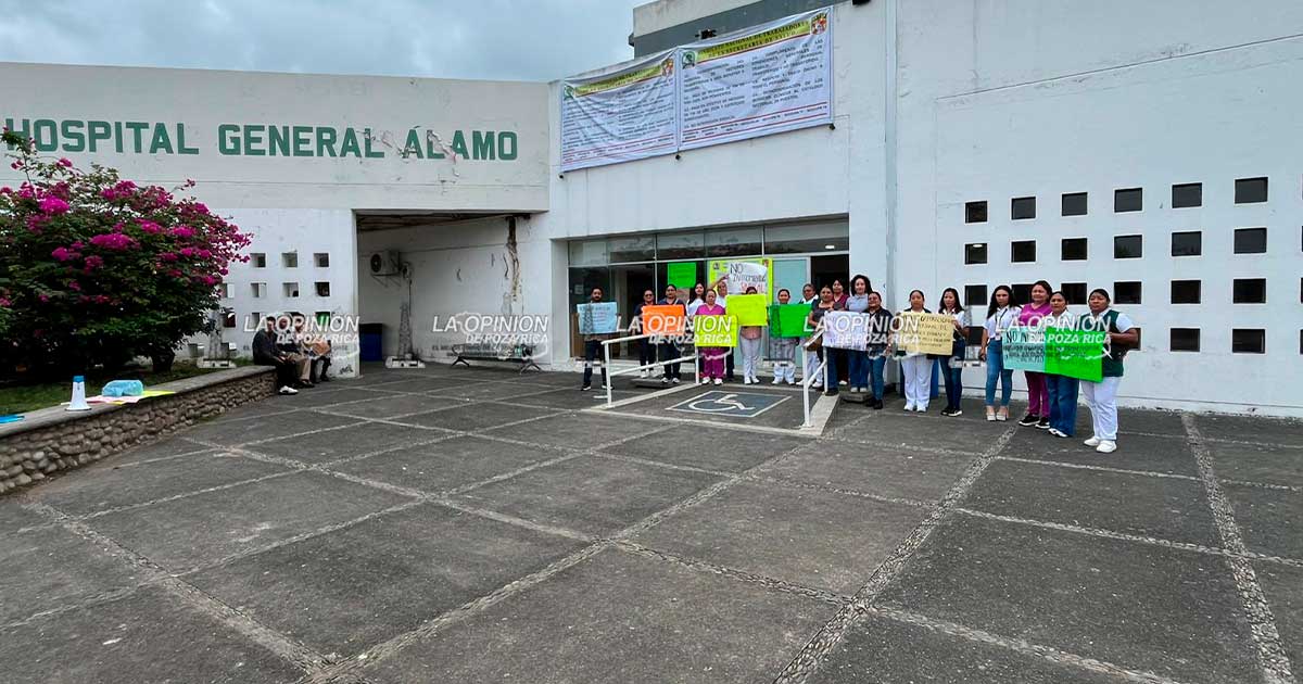 Álamo, Ver.- Por segundo día consecutivo, trabajadores sindicalizados del Hospital General de Álamo mantuvieron este martes una protesta para exigir atención a su pliego petitorio, en el marco de movilizaciones del sector salud en Veracruz.