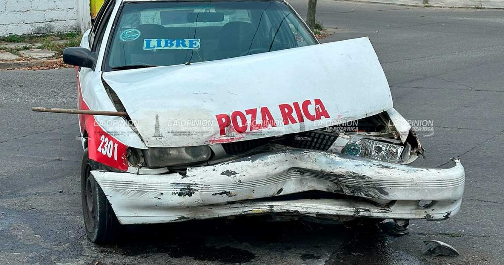 Poza Rica, Ver.- Un aparatoso accidente entre dos vehículos de alquiler se registró la tarde de este jueves en la colonia Chapultepec, dejando cuantiosos daños materiales y generando la movilización de autoridades viales.