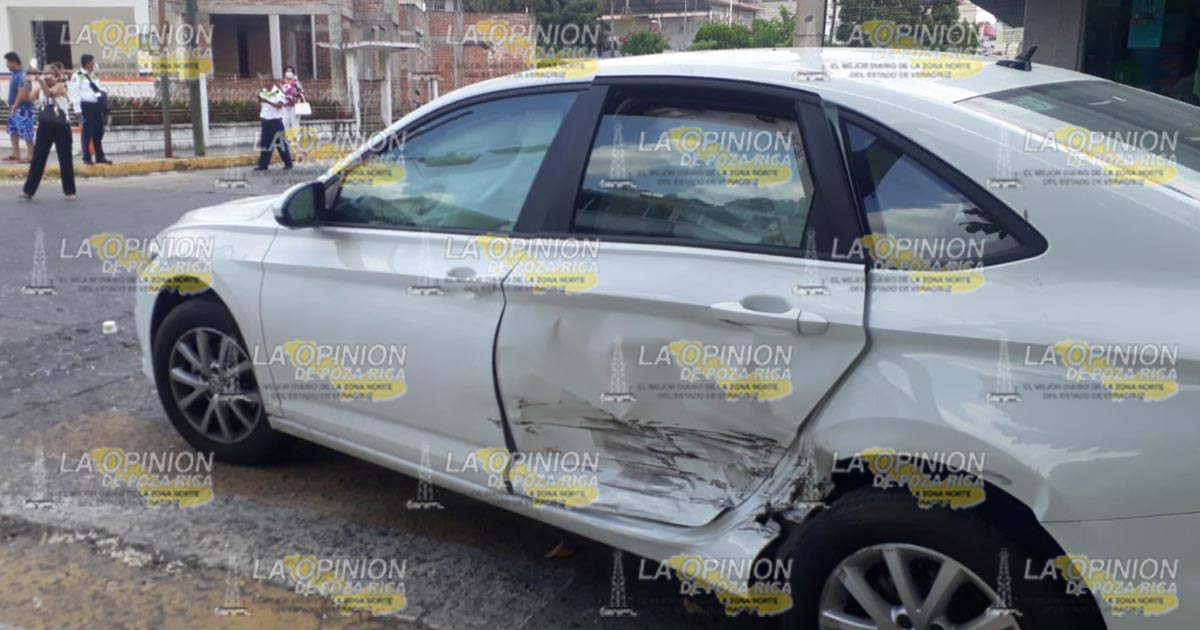 Poza Rica, Ver. – Mas de setenta mil pesos en daños materiales, dejó como saldo un percance vial registrado la mañana del domingo, entre una camioneta Acadia, marca GMC y un auto Volkswagen Jetta de reciente modelo, que colisionaron en la esquina de las calles Dos de Enero y Seis de la colonia Cazones, debido al mal estado de los semáforos que mostraban color verde para las dos calles.