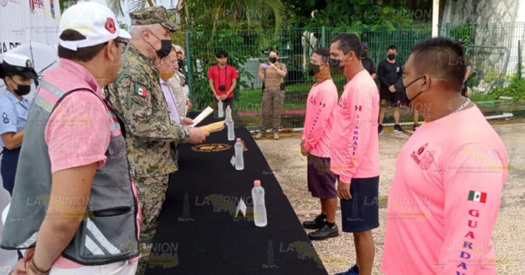 Tuxpan, Veracruz.-Personal de trabajos submarinos de la Secretaría de Marina- Armada de México, a través del Sector Naval de Tuxpan, impartió el curso de “Rescate Acuático”, esto con la finalidad de establecer un protocolo de actuación y mejorar las destrezas de los salvavidas de cada uno de los municipios de la zona norte del estado de Veracruz, para brindar auxilio a las personas en situación de ahogamiento.
