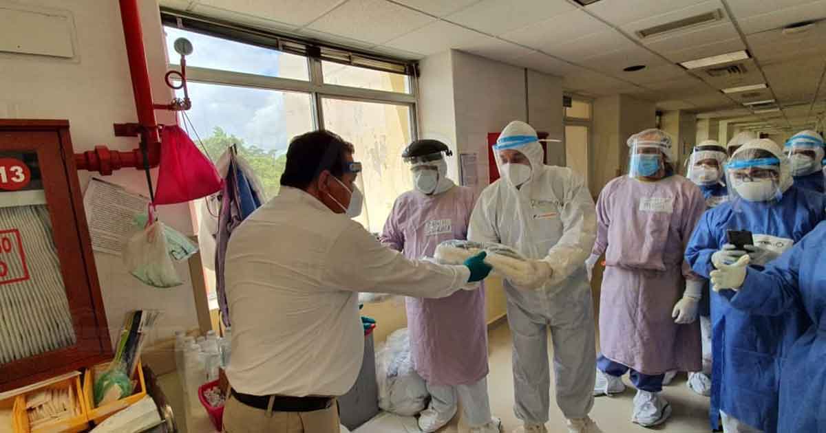 Poza Rica, Ver.- El secretario general de la Sección número 30 del STPRM, José Juan Soni Solís, encabezó la entrega de kits de protección para el personal médico y de enfermería que trabaja en el Hospital Regional y particularmente en las áreas de Covid, quienes están en contacto con las personas que padecen esta enfermedad.