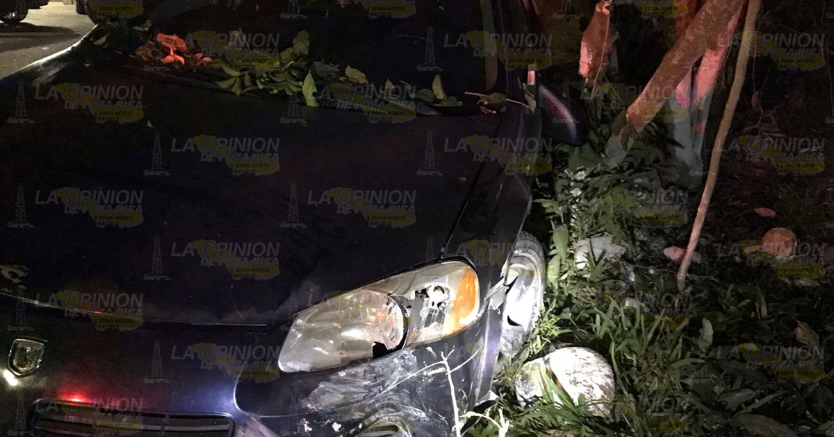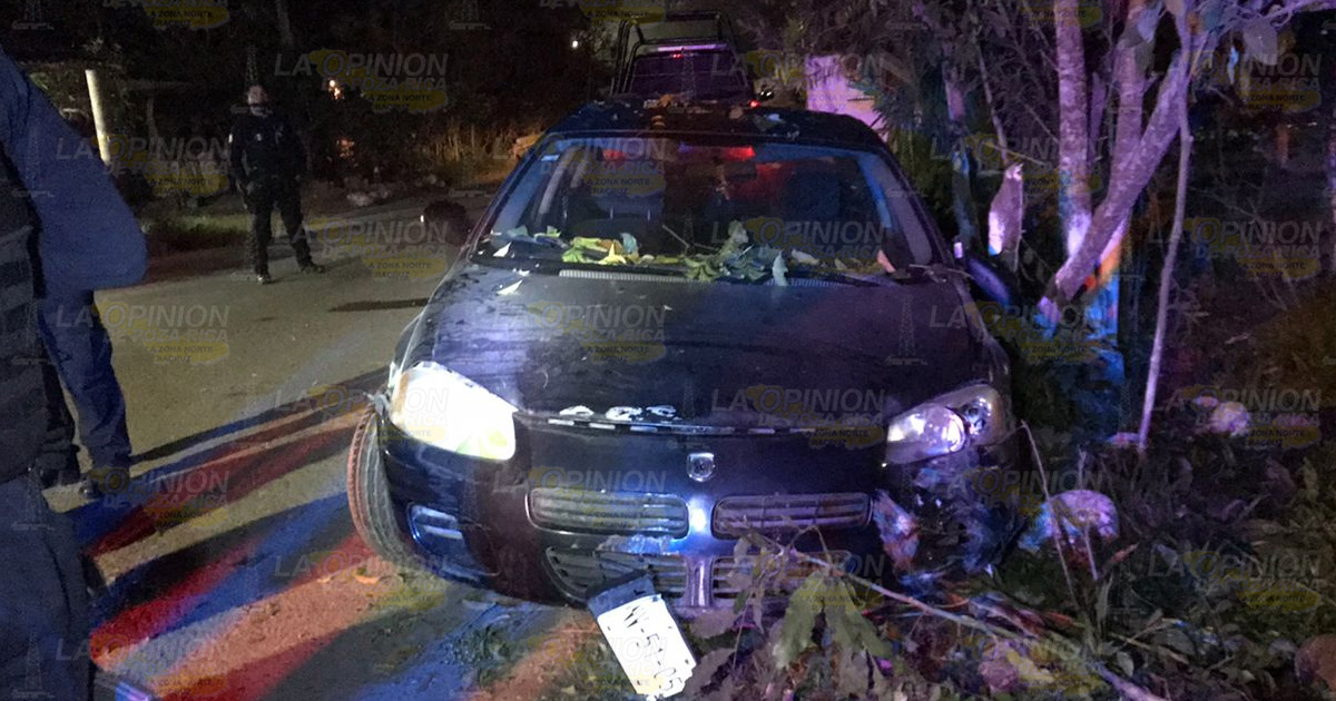 Fueron los vecinos de la comunidad de Cuajilotes quienes dieron parte a las autoridades policiales cuando se percataron que un automóvil de marca Chrysler, de la línea Stratus de color Azul, identificado con las placas NNV-51-05 de estado de México choco contra un árbol.