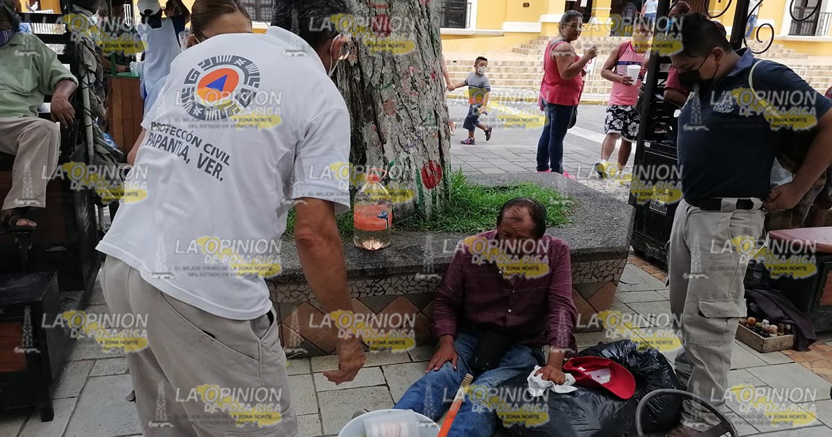 Papantla, Ver.- Dramática caída de su propia altura sufrió un hombre que se desmayó cuando se encontraba en el parque central Israel C. Téllez, siendo auxiliado por algunos betuneros que se encontraban en el lugar, mismos que solicitaron la presencia de paramédicos de Protección Civil.