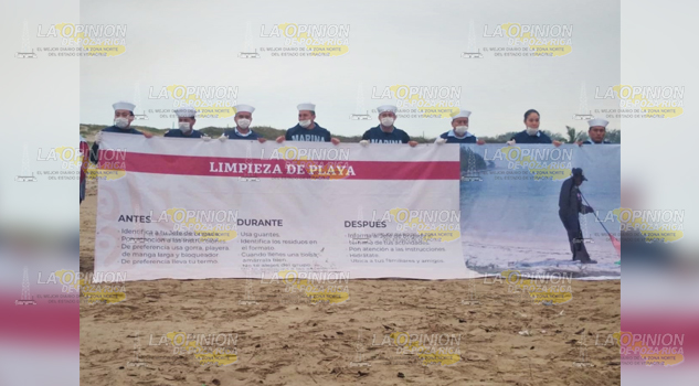 Tuxpan, Ver.- Con el objetivo de contribuir a mantener los océanos libres de residuos, evitando así los impactos negativos en el ecosistema y recursos marinos, elementos de la Secretaría de Marina-Armada de México, en funciones de Guardia Costera, así como el organismo no gubernamental (ONG) Ocean Conservancy, se sumaron a las jornadas de protección al medio ambiente marino, llevadas a cabo este sábado en playas tuxpeñas.