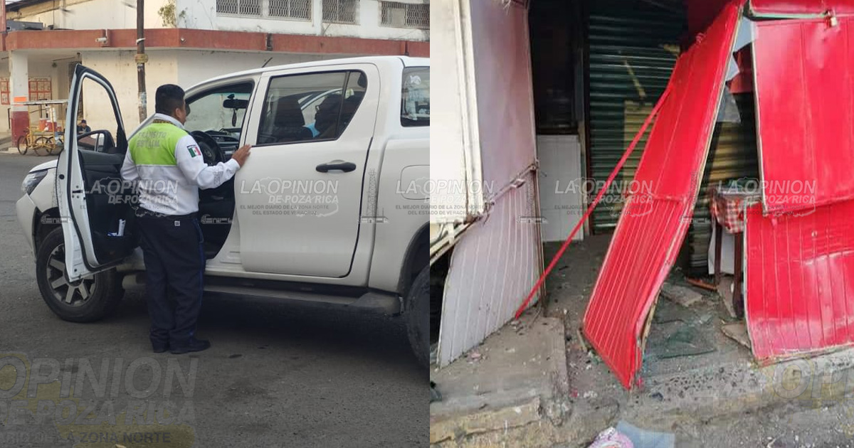 CERRO AZUL, VER.- Conductor de una camioneta estuvo a punto de acabar con un puesto de pollos y una taquería…