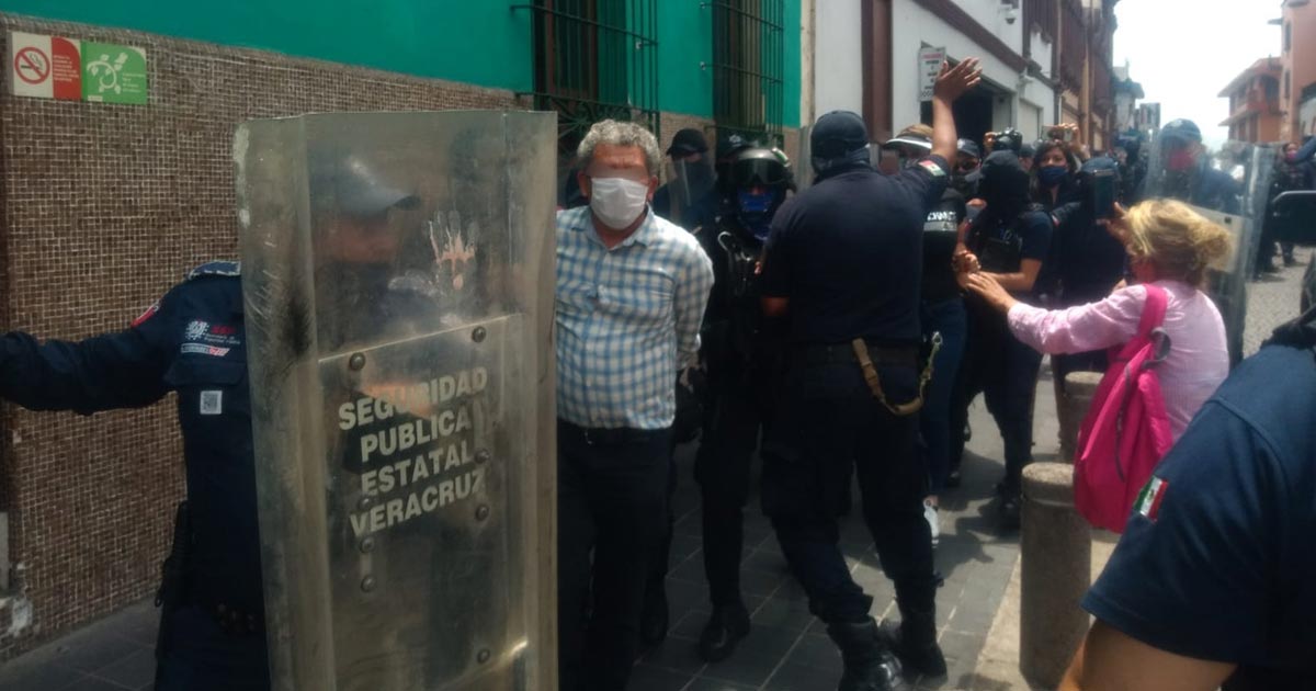 Policías estatales reprimen protesta de taxistas en Xalapa