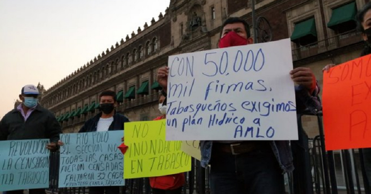 Tabasqueños afectados por inundaciones acuden a Palacio Nacional para exigirle a AMLO
