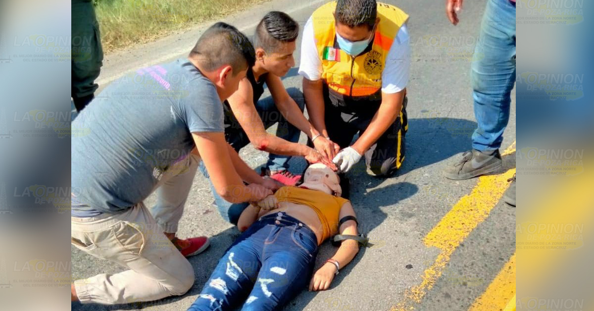 Chinampa de Gorostiza, Ver.-Con probable traumatismo craneocefálico y golpes en diferentes partes de su cuerpo resultó una joven mujer luego…
