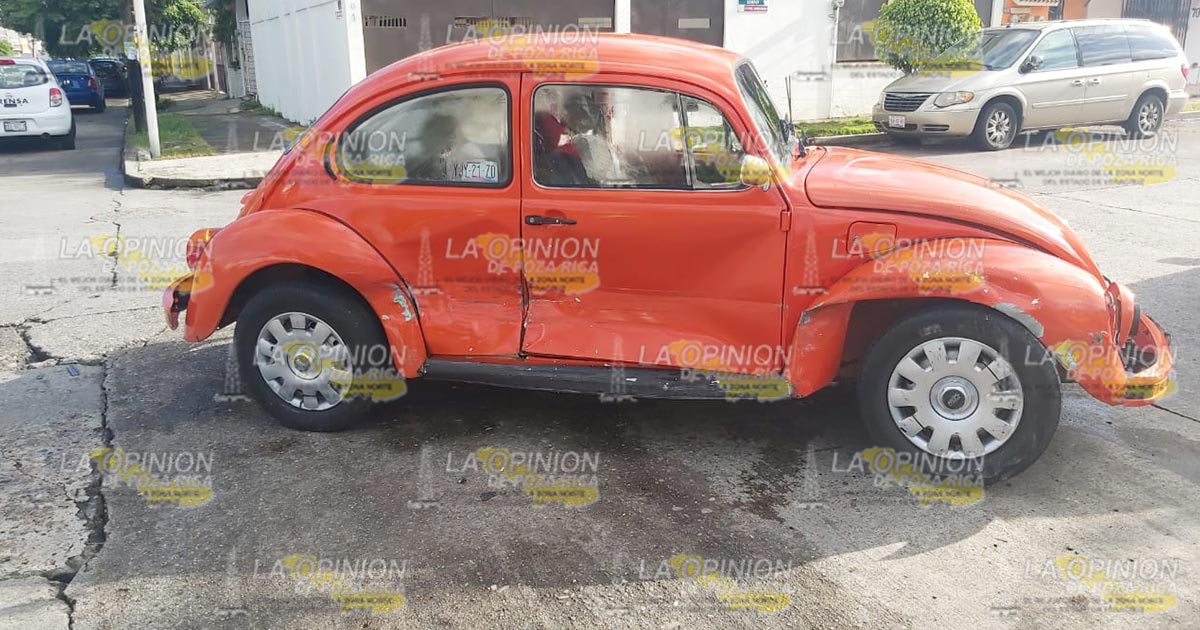 Poza Rica, Ver – Costosos daños materiales, fueron ocasionados por un taxi que embistió a un Vocho en un crucero de la colonia Cazones.