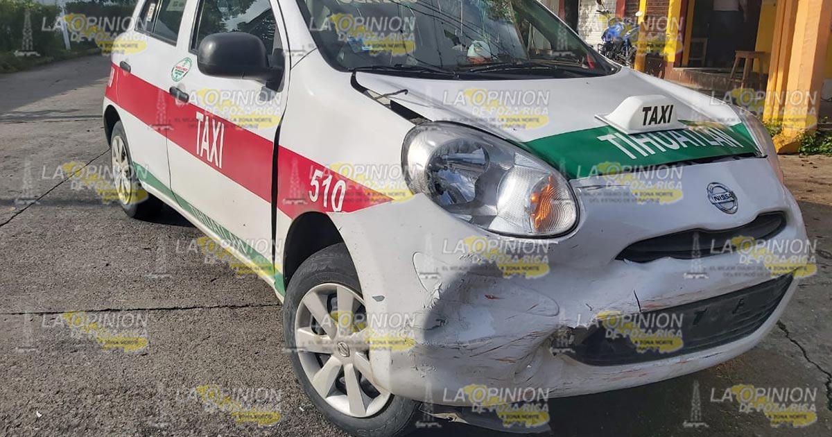 La unidad de alquiler con el número económico 510 de Tihuatlán, circulaba por la calle 12 pero no vio el disco de alto total y salió intempestivamente por lo que impactó el costado derecho del otro automóvil.
