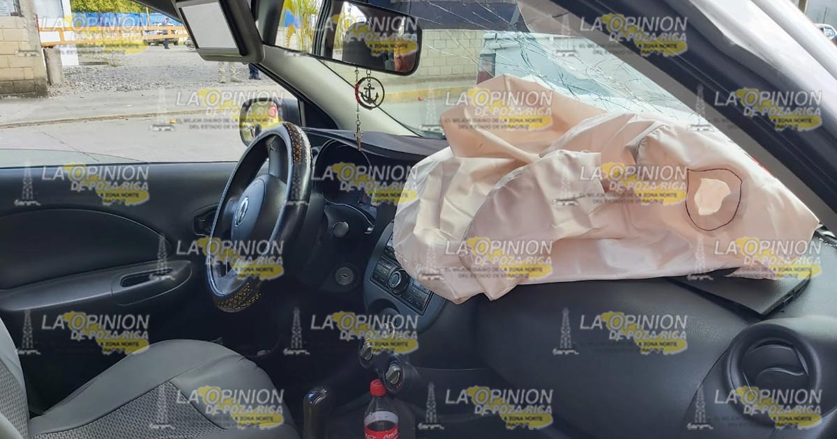 Poza Rica, Ver.- Una persona del sexo masculino resultó lesionado, luego de que el taxi en el que viajaba se impactará en la parte de atrás de una camioneta pick up