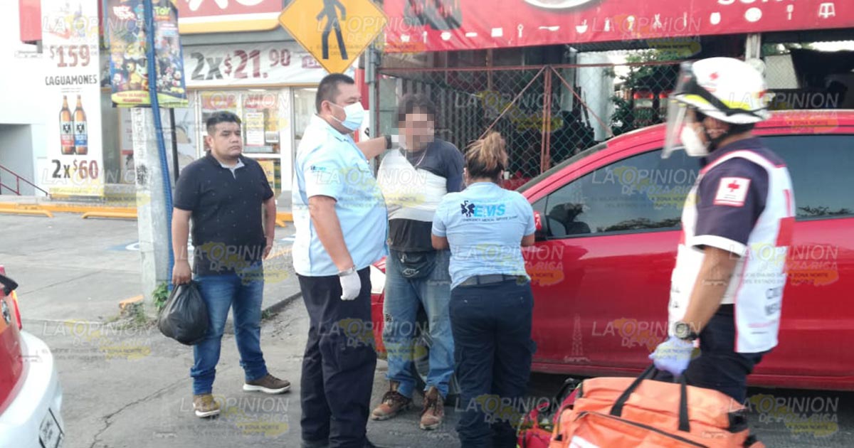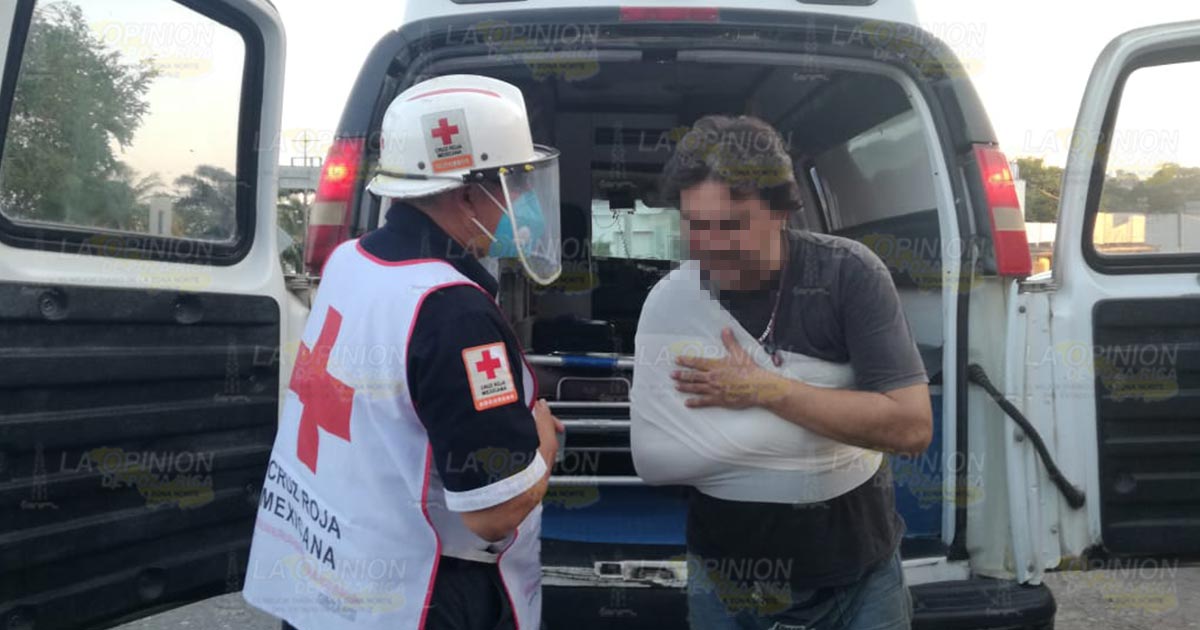 Tuxpan, Ver.- Trabajador del volante que no extremó precauciones para iniciar la marcha impactó a un motociclista y lo derribó provocándole cuantiosos diversas contusiones en el cuerpo sin embargo la víctima se negó a ser hospitalizado.
