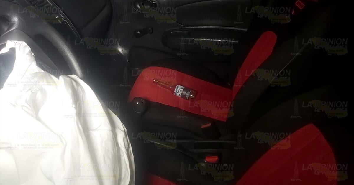 Cazones, Ver.- Una unidad de alquiler destrozada fue abandonada por su chofer en el sector conocido como la curva de la viuda en el municipio de Cazones.