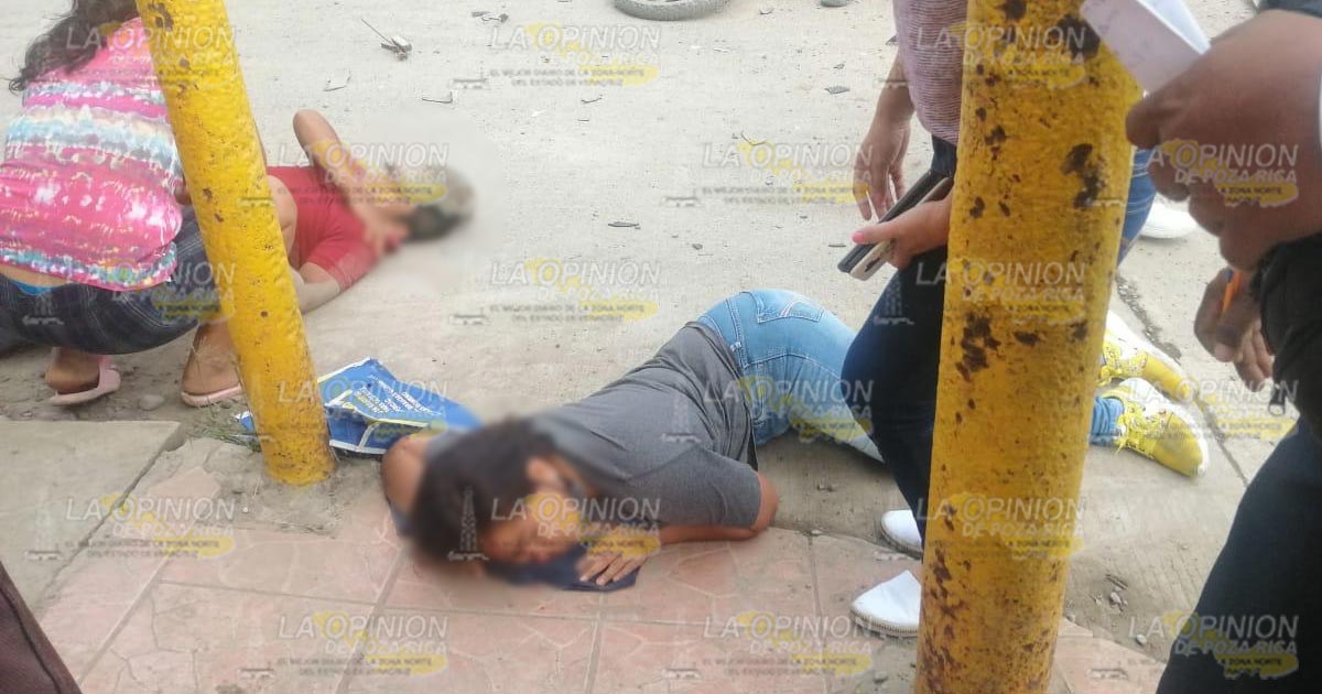 Álamo, Ver. – la mañana de este sábado se presentó un accidente a la altura del Sector Salud Smith localizado en la colonia Arboledas, cuando el conductor del taxi 368 se impactó de frente contra una motocicleta, en la cual viajaban dos personas, los cuales quedaron tendidos a un costado de la carretera.