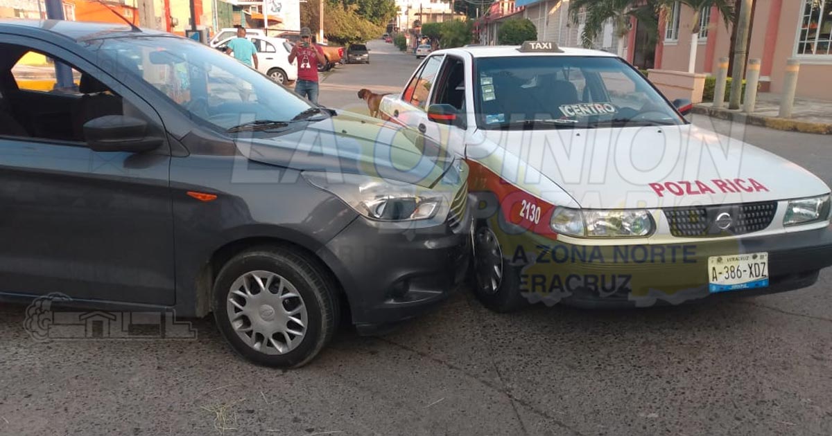 Poza Rica, Ver. – Gran susto se llevó una familia, luego de que estuvieran en medio de un accidente automovilístico entre un automóvil particular y unidad de alquiler de esta ciudad en donde sólo hubo daños materiales.