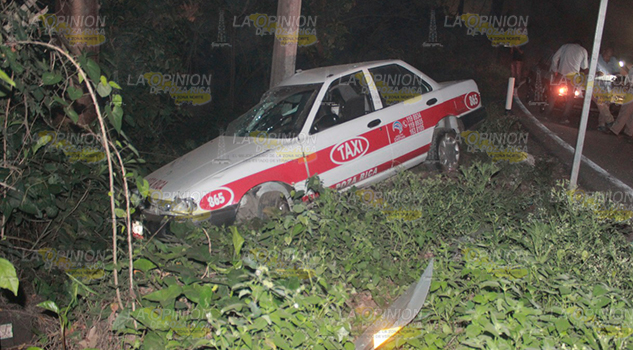 El lesionado responde al nombre de Juan Diego, quien conducía un taxi marcado con el número económico 865 de esta localidad y que se dirigía a la Concha, municipio de Tihuatlán. Los hechos se registraron a la altura de la curva que está unos metros adelante del fraccionamiento Tajin, de Papantla. Fue entonces que un tráiler invadió su carril y para evitar el golpe volanteó, esto ocasionó que se saliera de la carpeta asfáltica y derribó los señalamientos de tránsito y terminó estampado entre un árbol y un poste de la CFE.